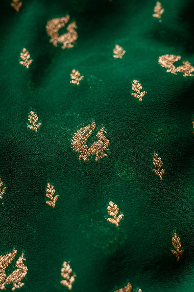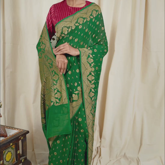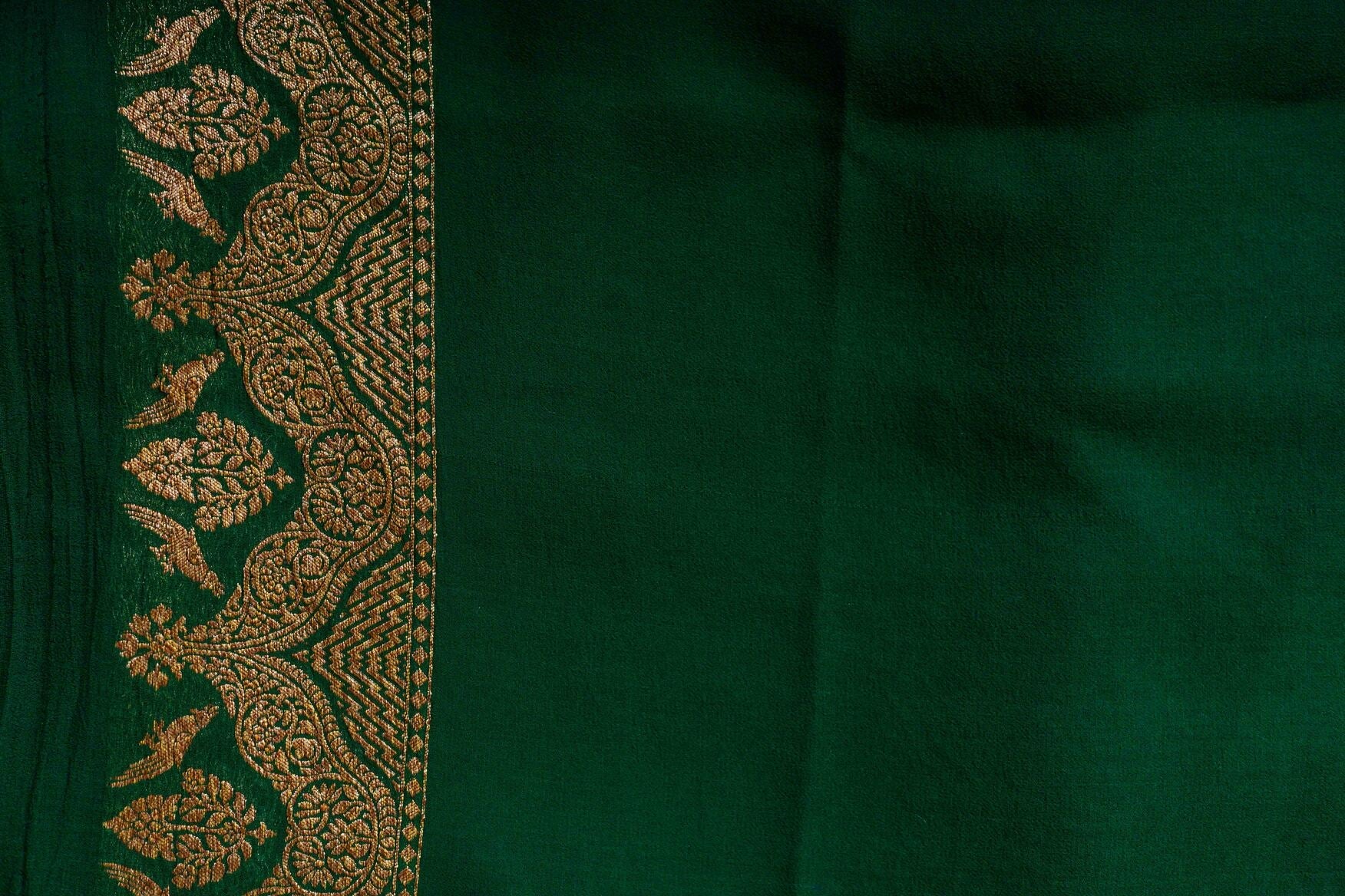 Bottle Green Khaddi Georgette Handwoven Banaras Saree