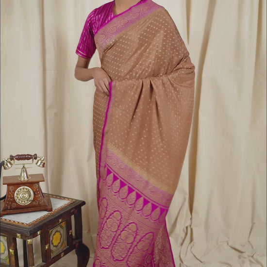 Dusky Chiku Crepe Silk Handwoven Banarasee Saree