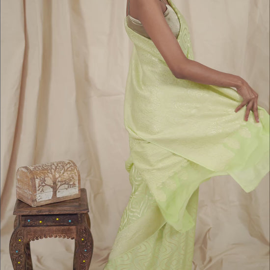 Pastel Sea Green Crepe Silk Handwoven Banarasee Saree