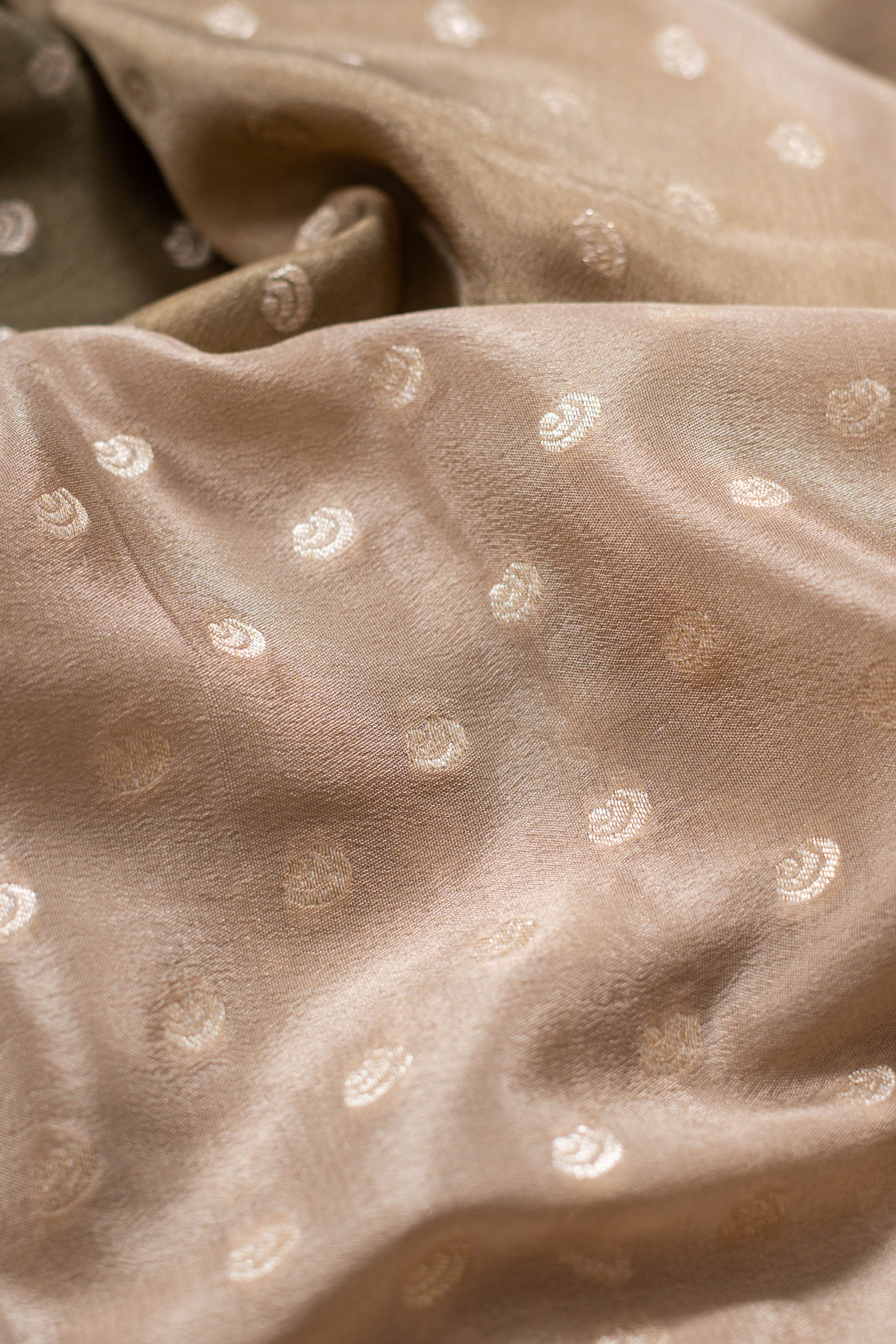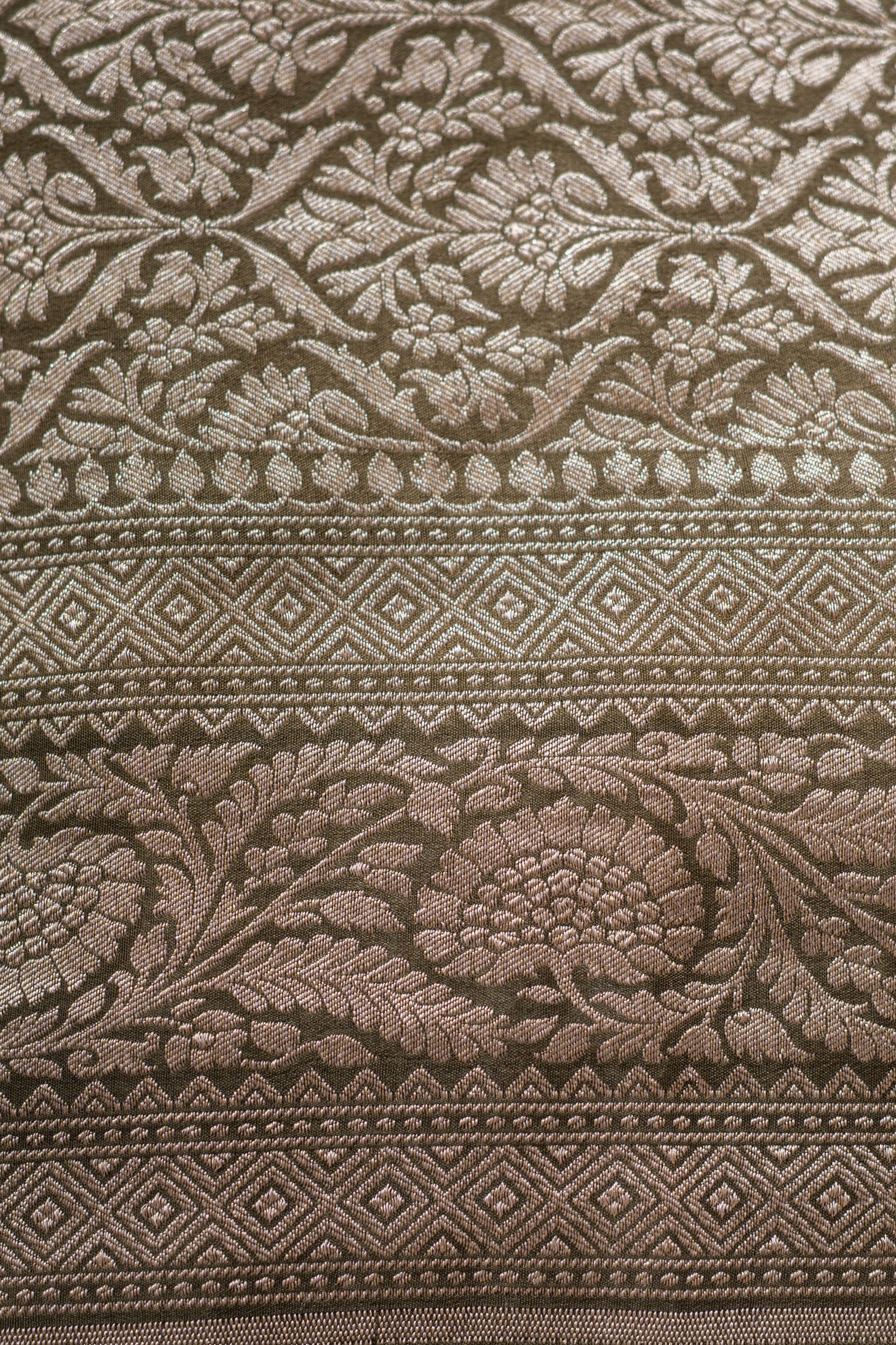 If quiet elegance had a colour, it would be Dusky Chiku. This Crepe Silk Banarasee Saree doesn’t scream for attention—it draws it in with grace.