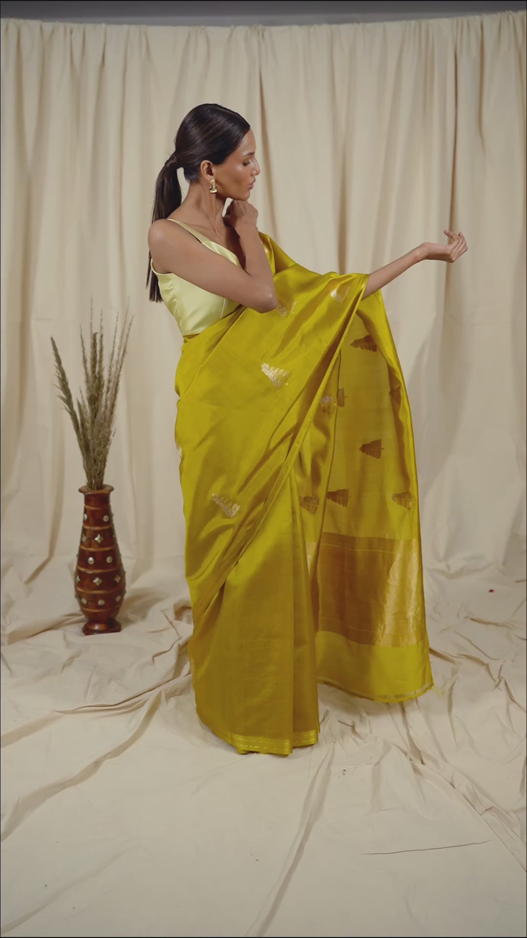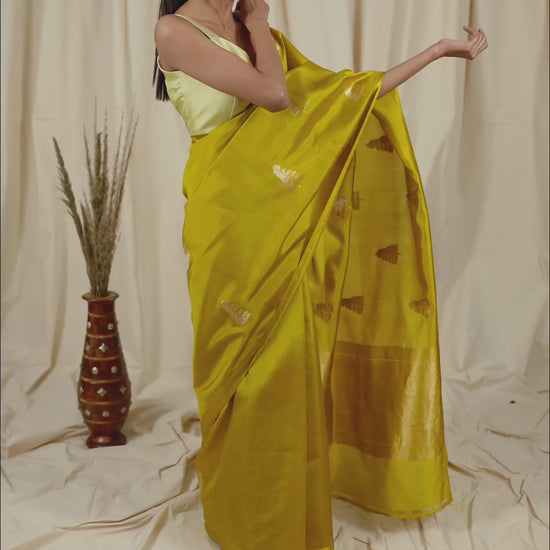 Golden Yellow Soft Silk Handwoven Banaras Saree