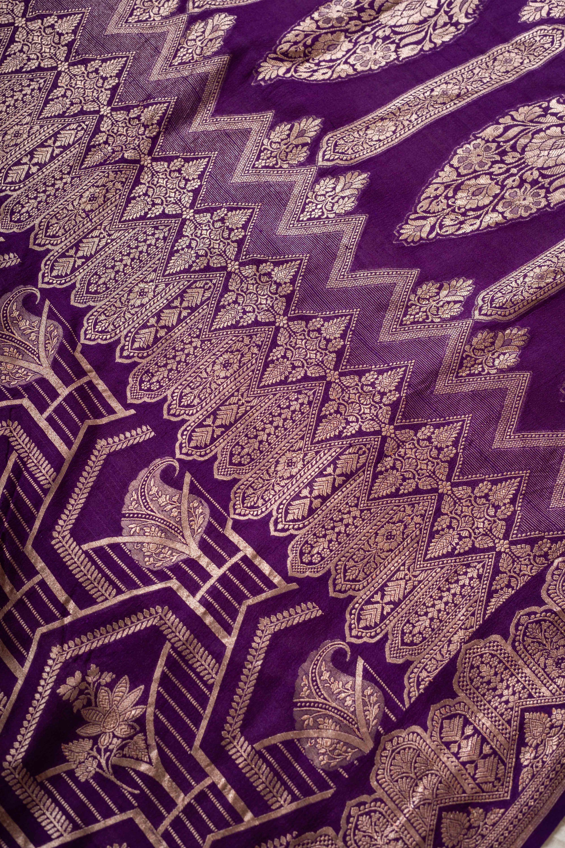 The Magenta Tussar Georgette Banarasi Handwoven Saree is not just an outfit, but a statement—a symbol of artistry and elegance that elevates any occasion.