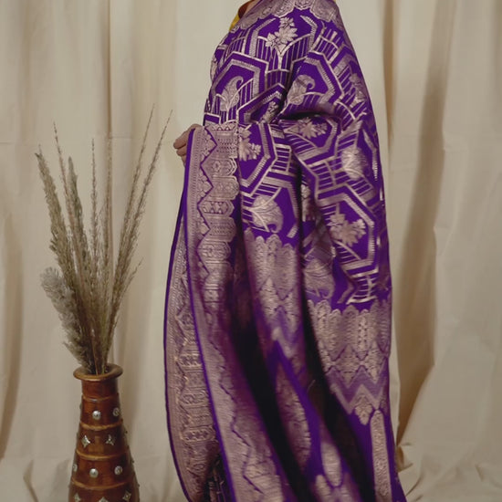 Woven with Tradition – Expertly handwoven by skilled Banarasi artisans, this saree features intricate patterns that reflect the centuries-old weaving techniques, rich in history and culture.