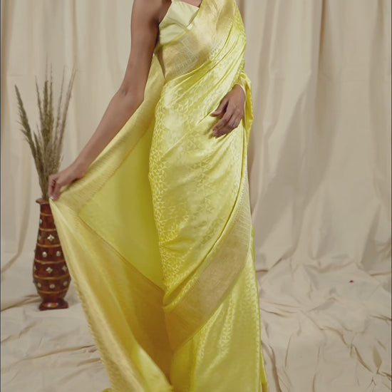 Lemon Yellow Mashru Satin Handwoven Banarasee Saree