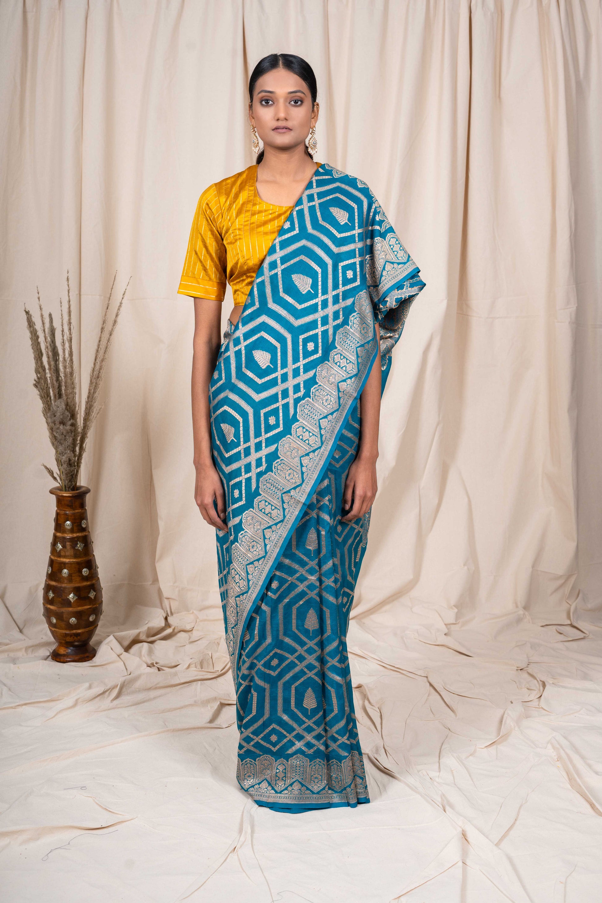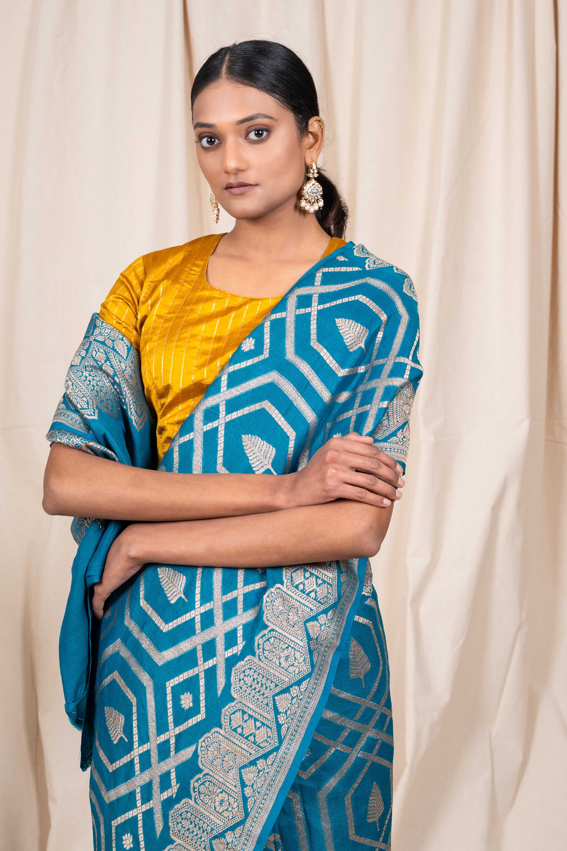 - Accessories – accessories shown like tassles may or may not be a part of the actual product. Blouses/Jewelry worn by the model are only for photo shoots and styling reference.
