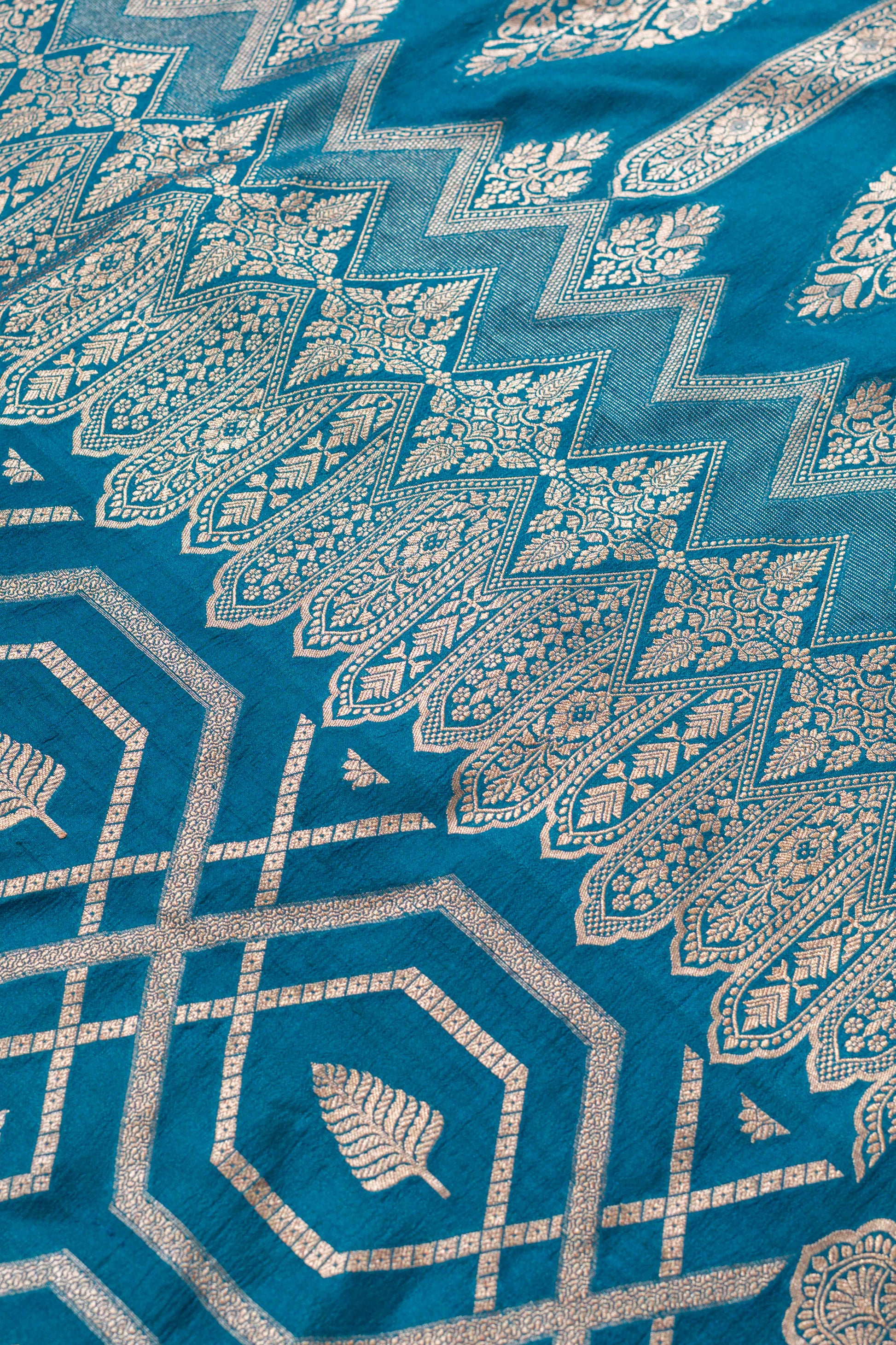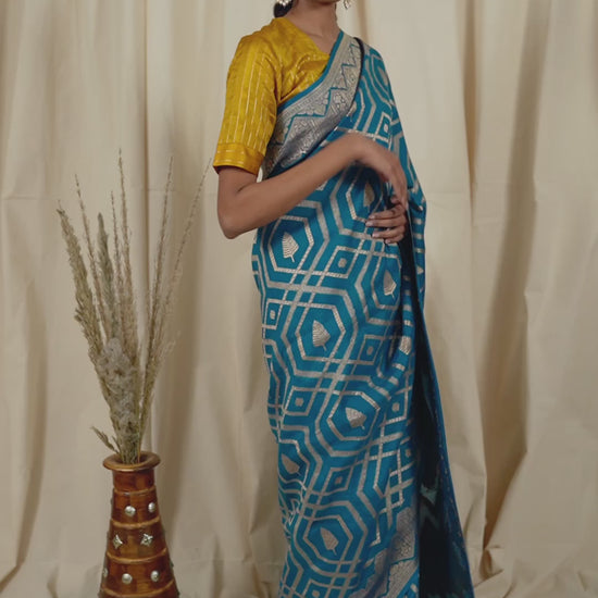 Each weave tells a story, woven by skilled artisans whose hands bring to life the intricate designs that define Banarasi weaving. The lightweight, sheer texture of organza adds a graceful flow, making this saree ideal for any festive occasion or a refined evening affair. Its subtle shimmer adds to its appeal, creating an aura of sophistication and elegance.