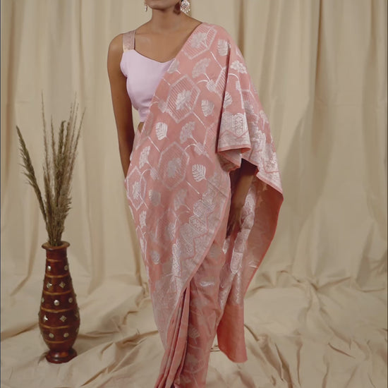 Baby Pink Tussar Georgette Handwoven Banaras Saree