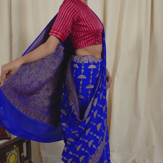 Meticulously Handwoven – Crafted by skilled artisans using age-old Banarasi weaving techniques.